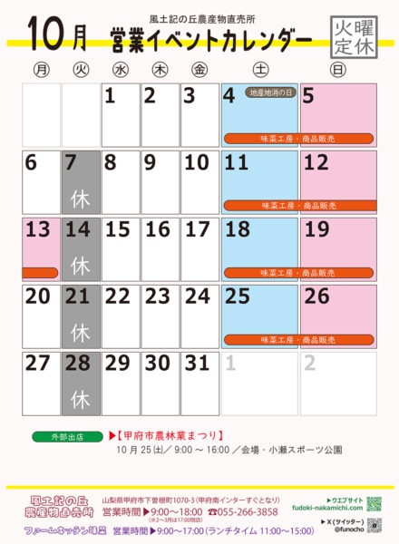 2025年10月の営業日&直売所通信