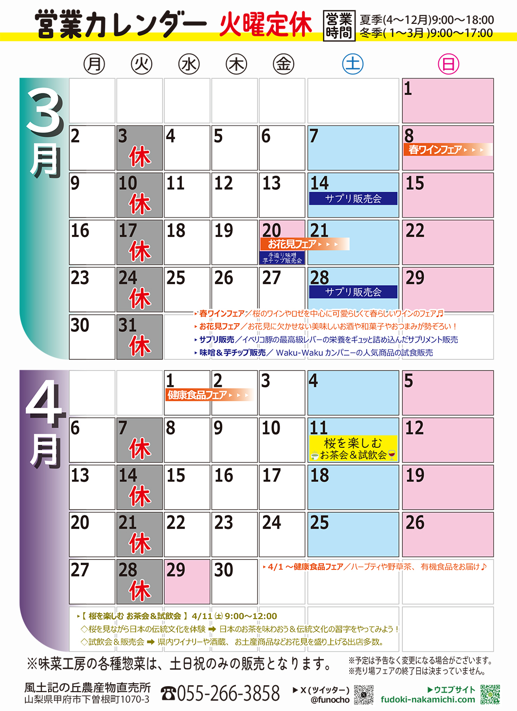営業時間/9時~18時(※1月〜3月は17:00閉店)